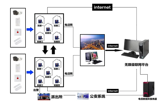 庭院巡逻:布防状态下,出现警情,系统自动拍摄现场照片,并及时短信告知业主。