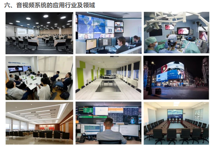 。音视频系统开始一般指音视频会议系统,后来业务内容涵盖更多更广,包括尖叫视频APP灯光、展览展示、安防指挥、集中监控、互动触控、室内外广告、演播厅、控制室、沉浸式系统、视频会议、远程教学、智能建筑等等。